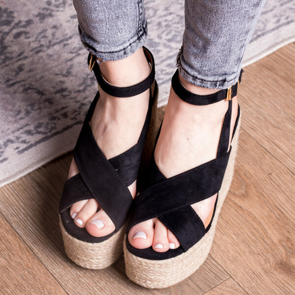 Босоножки из искусственной замши черного цвета модное решение, которого требуют ваши образы. Модель без лишних элементов, дополнена застежкой ремешком. Босоножки женские позволят вам всегда чувствовать себя комфортно и выглядеть стильно.
