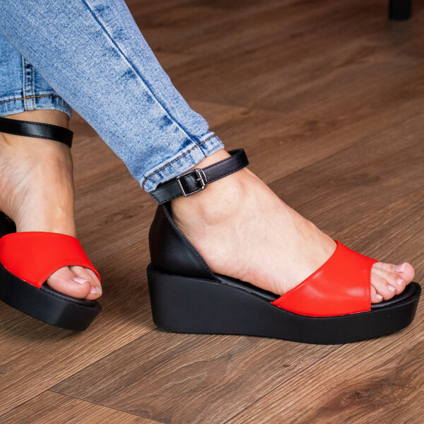 Босоножки из искусственной кожи красного цвета модное решение, которого требуют ваши образы. Модель без лишних элементов, дополнена застежкой ремешком. Босоножки женские позволят вам всегда чувствовать себя комфортно и выглядеть стильно.