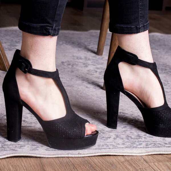 Босоножки из искусственной замши черного цвета модное решение, которого требуют ваши образы. Модель без лишних элементов, дополнена застежкой ремешком. Босоножки женские позволят вам всегда чувствовать себя комфортно и выглядеть стильно.