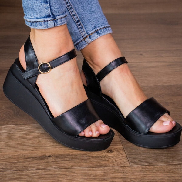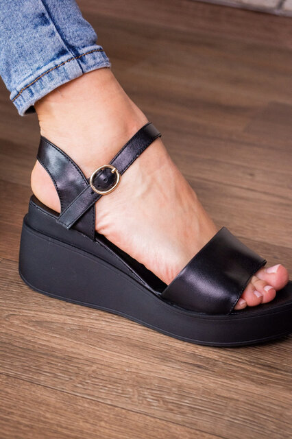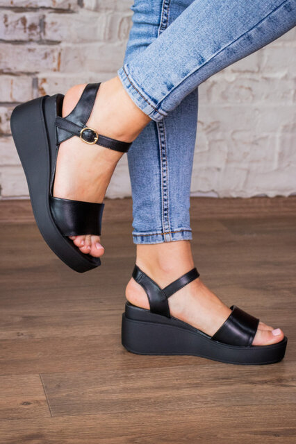 Босоножки из натуральной кожи черного цвета модное решение, которого требуют ваши образы. Модель без лишних элементов, дополнена застежкой ремешком. Босоножки женские позволят вам всегда чувствовать себя комфортно и выглядеть стильно.
