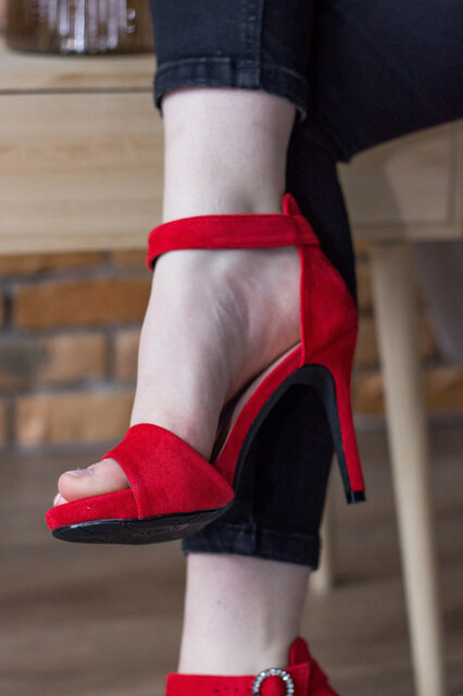 Босоножки из искусственной замши красного цвета модное решение, которого требуют ваши образы. Модель без лишних элементов, дополнена застежкой ремешком. Босоножки женские позволят вам всегда чувствовать себя комфортно и выглядеть стильно.