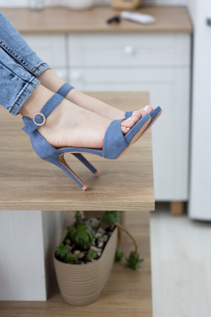 Босоножки из искусственной замши голубого цвета модное решение, которого требуют ваши образы. Модель без лишних элементов, дополнена застежкой ремешком. Босоножки женские позволят вам всегда чувствовать себя комфортно и выглядеть стильно.
