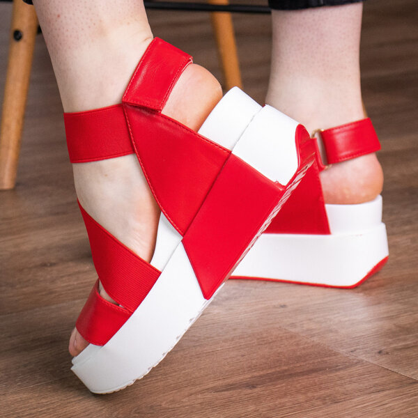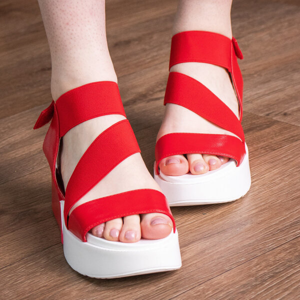 Босоножки из искусственной кожи и резинки красного цвета модное решение, которого требуют ваши образы. Модель без лишних элементов, дополнена застежкой липучкой. Босоножки женские позволят вам всегда чувствовать себя комфортно и выглядеть стильно.