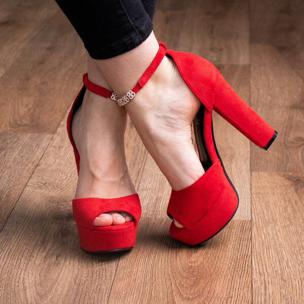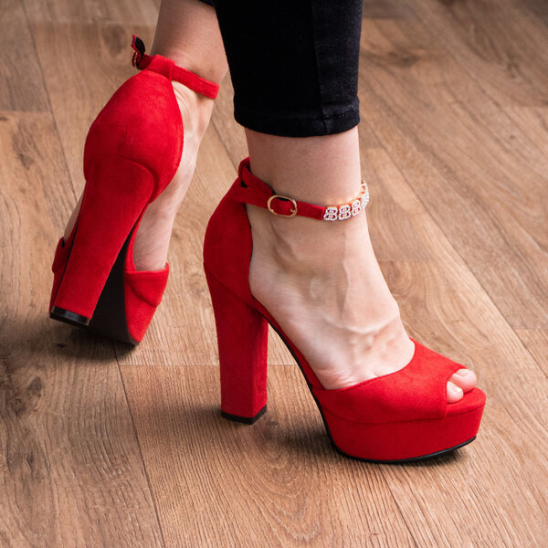 Босоножки из искусственной замши красного цвета модное решение, которого требуют ваши образы. Модель без лишних элементов, дополнена застежкой ремешком. Босоножки женские позволят вам всегда чувствовать себя комфортно и выглядеть стильно.