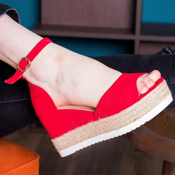 Босоножки из искусственной замши красного цвета модное решение, которого требуют ваши образы. Модель без лишних элементов, дополнена застежкой ремешком. Босоножки женские позволят вам всегда чувствовать себя комфортно и выглядеть стильно.