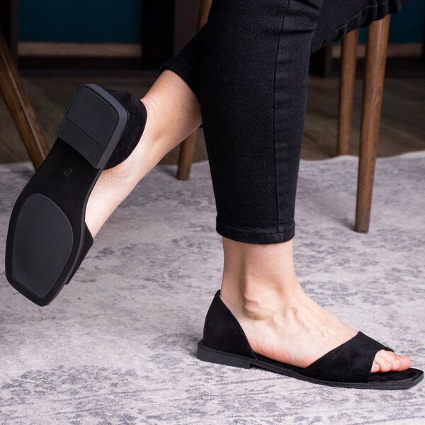 Босоножки из искусственной замши черного цвета модное решение, которого требуют ваши образы. Модель без лишних элементов, дополнена застежкой ремешком. Босоножки женские позволят вам всегда чувствовать себя комфортно и выглядеть стильно.