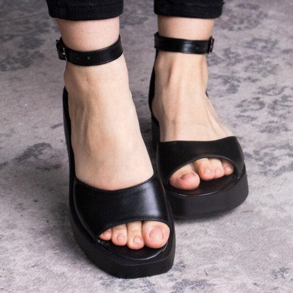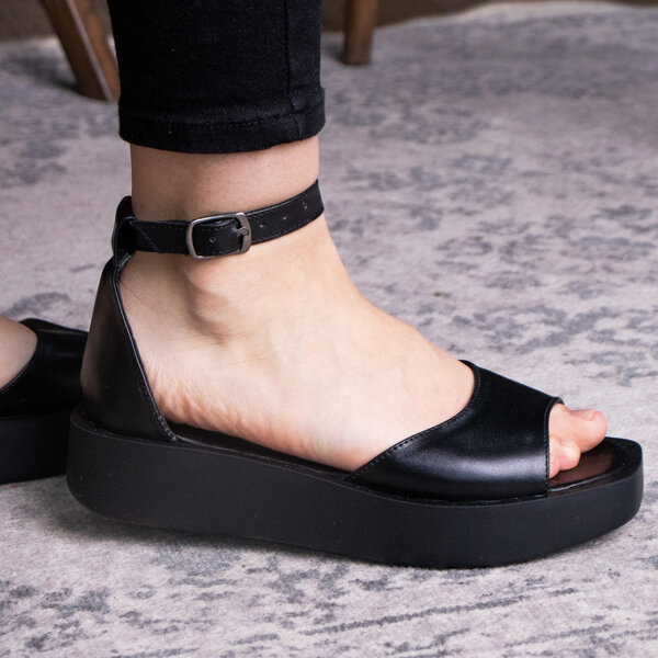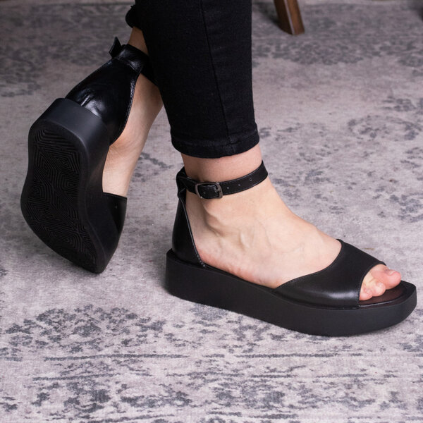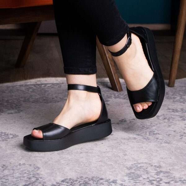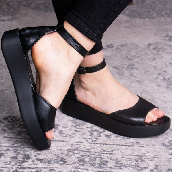 Босоножки из натуральной кожи черного цвета модное решение, которого требуют ваши образы. Модель без лишних элементов, дополнена застежкой ремешком. Босоножки женские позволят вам всегда чувствовать себя комфортно и выглядеть стильно.
