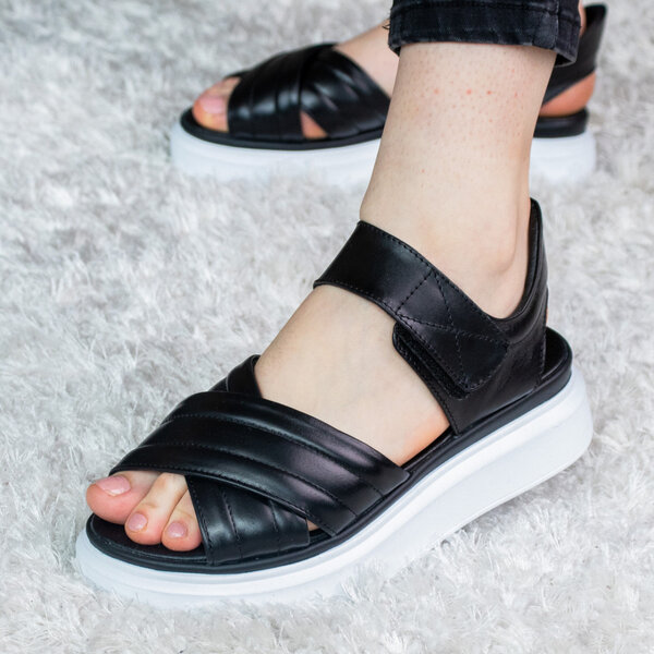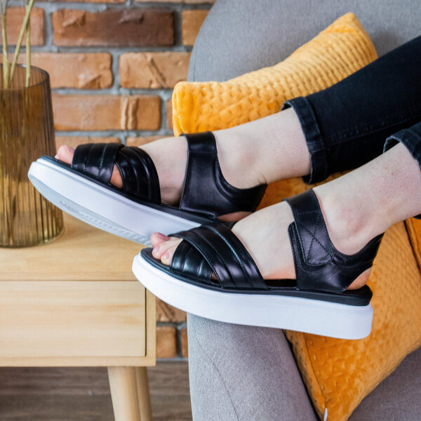 Босоножки из натуральной кожи черного цвета модное решение, которого требуют ваши образы. Модель без лишних элементов, дополнена застежкой ремешком. Босоножки женские позволят вам всегда чувствовать себя комфортно и выглядеть стильно.
