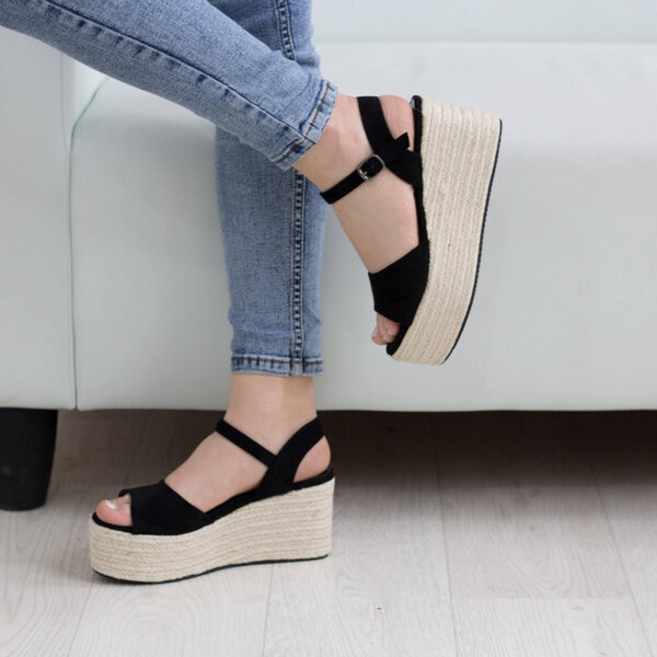 Босоножки из искусственной замши черного цвета модное решение, которого требуют ваши образы. Модель без лишних элементов, дополнена застежкой ремешком. Босоножки женские позволят вам всегда чувствовать себя комфортно и выглядеть стильно.