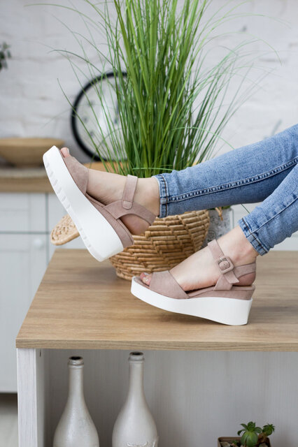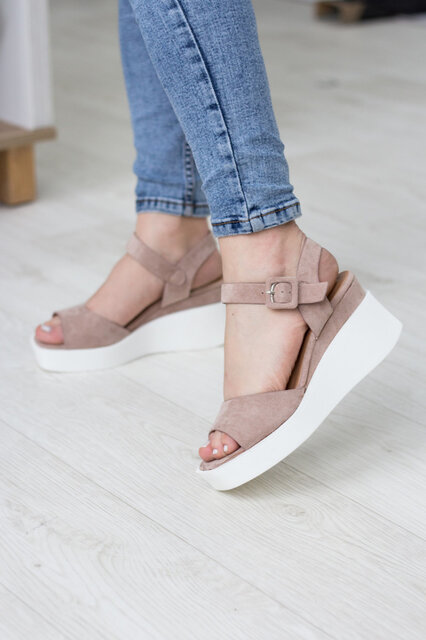 Босоножки из искусственной замши бежевого цвета модное решение, которого требуют ваши образы. Модель без лишних элементов, дополнена застежкой ремешком. Босоножки женские позволят вам всегда чувствовать себя комфортно и выглядеть стильно.