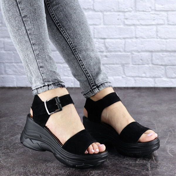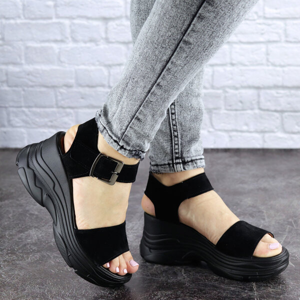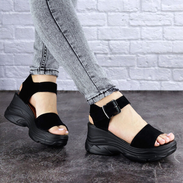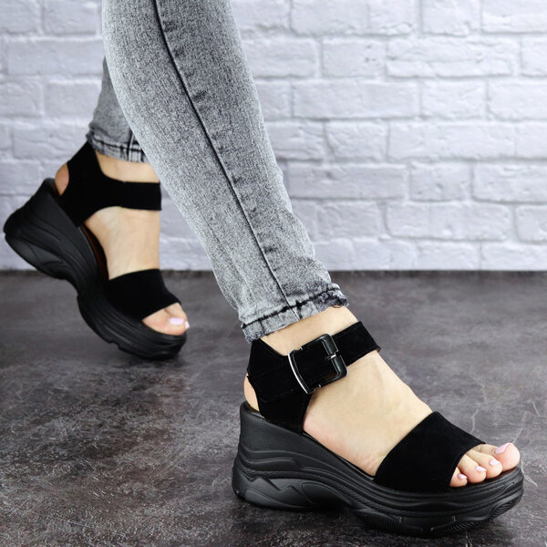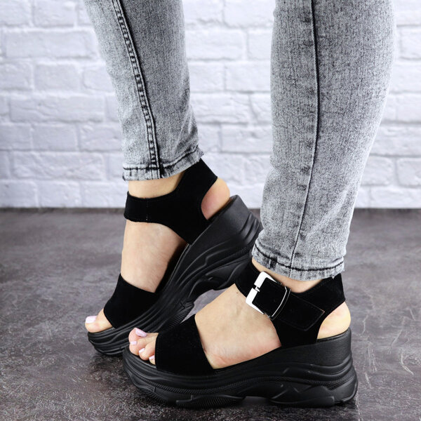 Женские босоножки замшевые Fashion Bently 1915 38 размер 24 см Черный