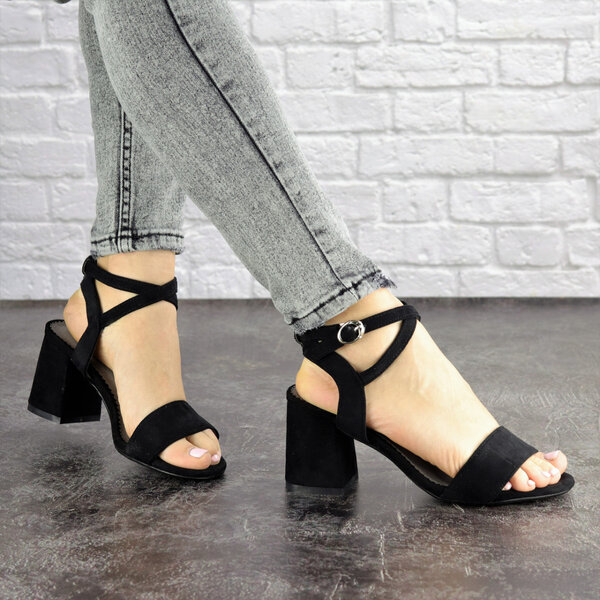 - Женские черные босоножки на каблуке Bayou 1641
