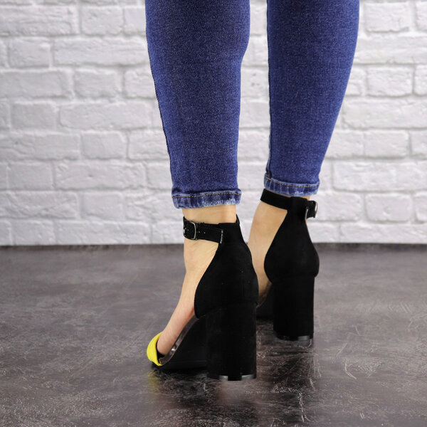 - Женские босоножки на каблуке черные с желтым Loopy 1535