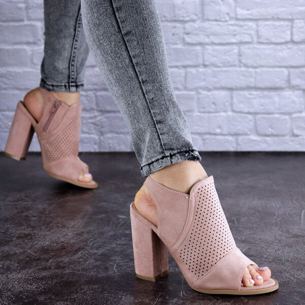- Женские пудровые босоножки на каблуке Mildred 1720