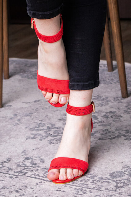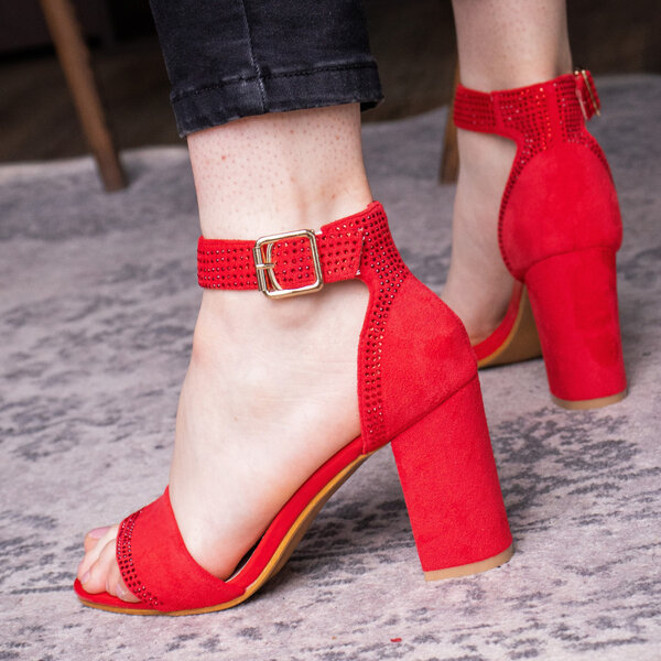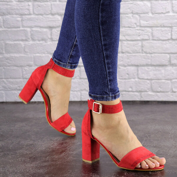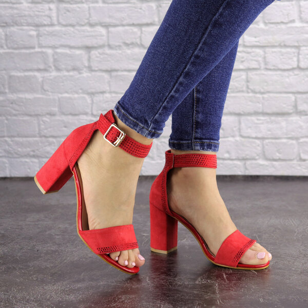 - Женские красные босоножки на каблуке Moby 1559