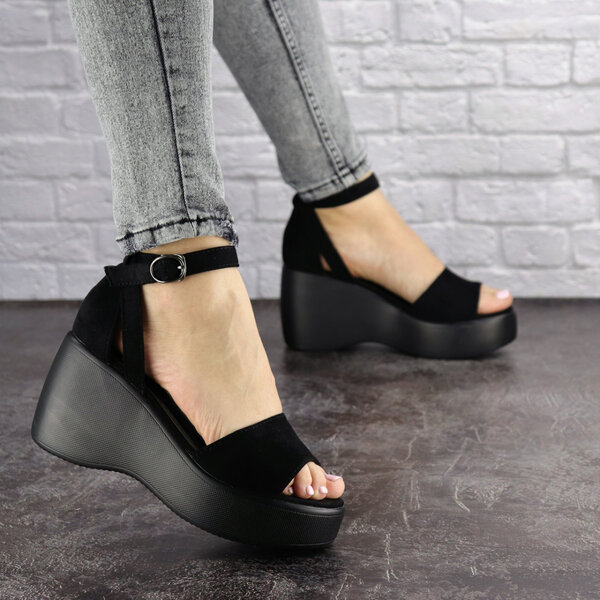 Женские босоножки на танкетке Fashion Anna 1628 38 размер 24,5 см Черный