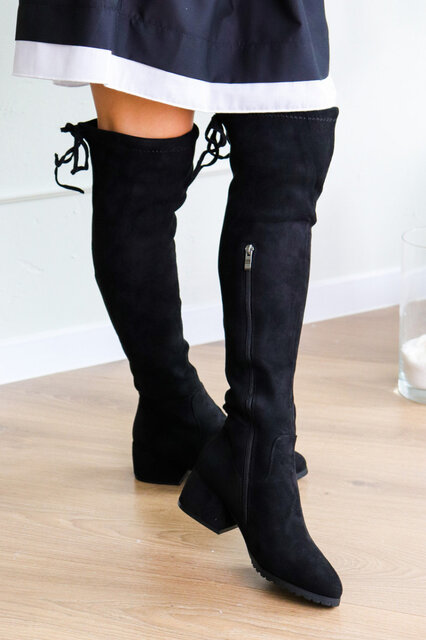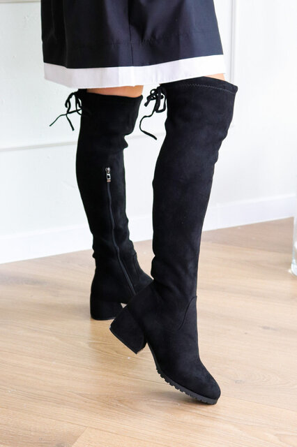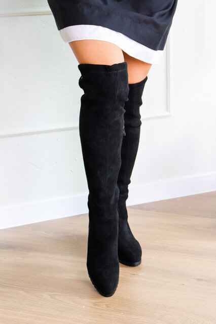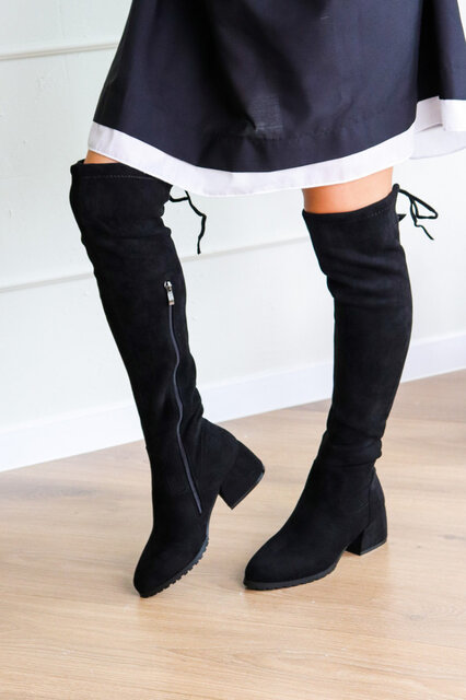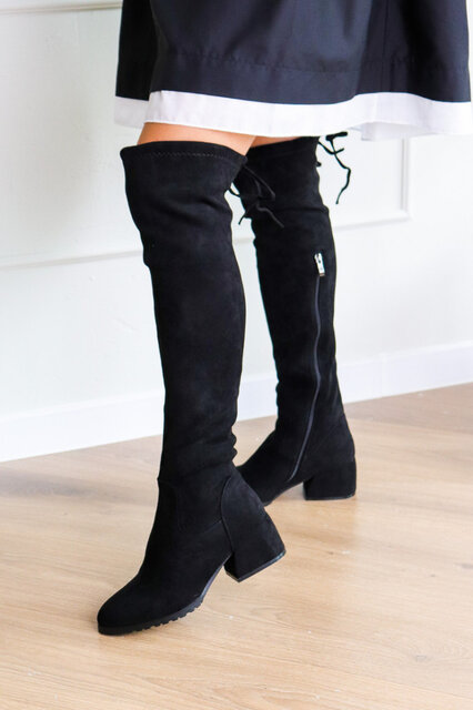 Ботфорты женские черные выполненные из искусственной замши. Модель представлена в демисезонном варианте внутри искуссственный мех и искусственный флис. Стильные и комфортные женские ботфорты чудесно впишутся в гардероб.