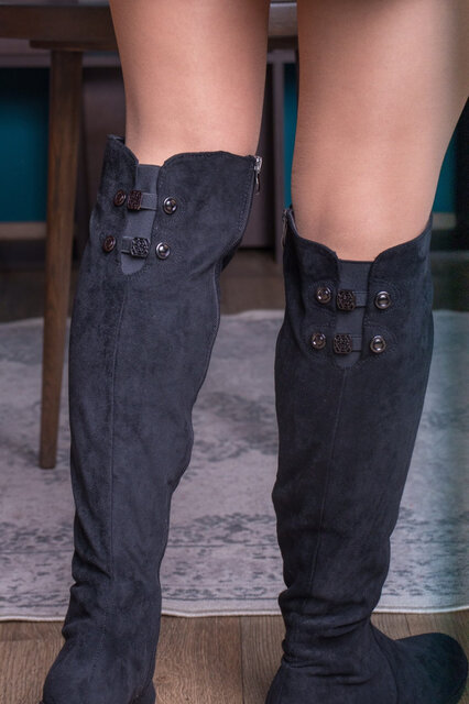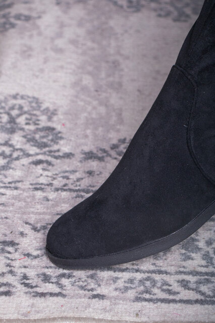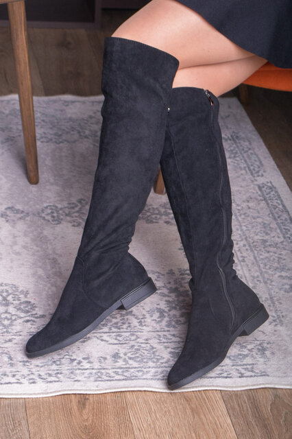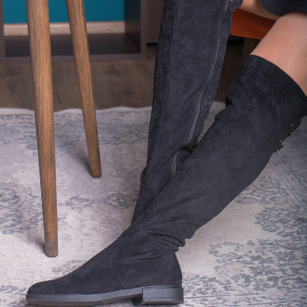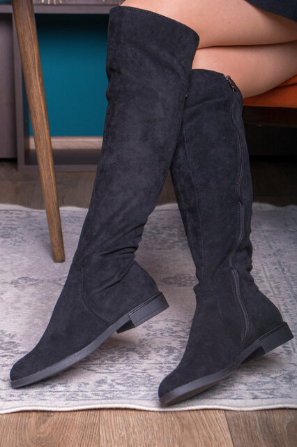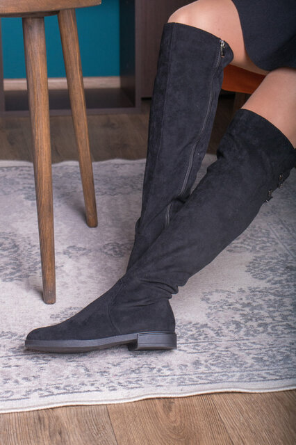 Ботфорты женские черные выполненные из искусственной замши. Модель представлена в демисезонном варианте внутри искусственный флис. Стильные и комфортные женские ботфорты чудесно впишутся в гардероб.