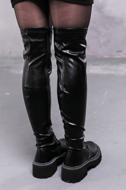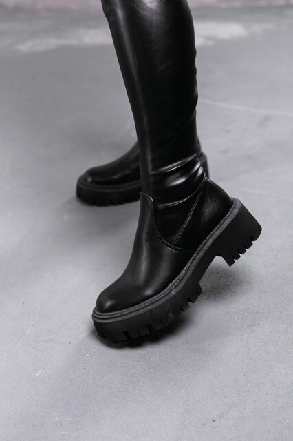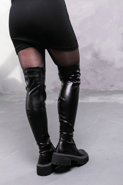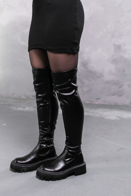 Ботфорты женские черные выполненные из искусственной кожи. Модель представлена в демисезонном варианте внутри подкладка из флиса. Стильные и комфортные женские ботфорты чудесно впишутся в гардероб.