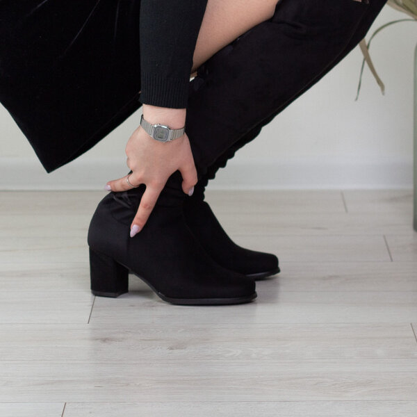 Ботфорты женские черные выполненные из искусственной замши. Модель представлена в демисезонном варианте внутри искусственный флис. Стильные и комфортные женские ботфорты чудесно впишутся в гардероб.