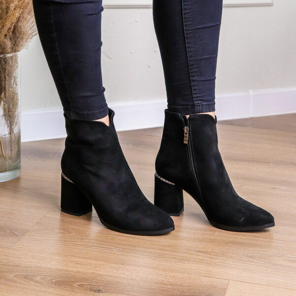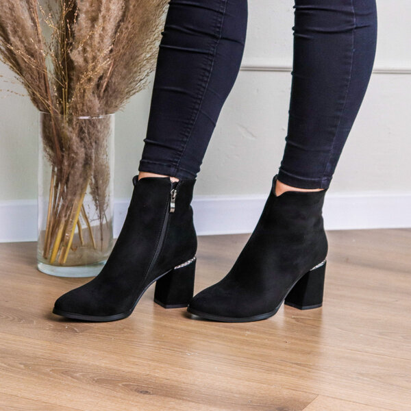 Ботильоны женские выполнены из искуственной замши, внутри подкалка из флиса. Модель аккуратно сидит на ножке. Дизайн этой модели в черном цвете. Рассчитаны на узкую и среднюю ножку. Женские ботильоны Dawn – позволят вам сделать ваш образ еще более изысканным и утонченным.