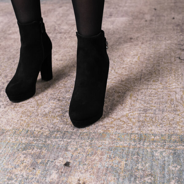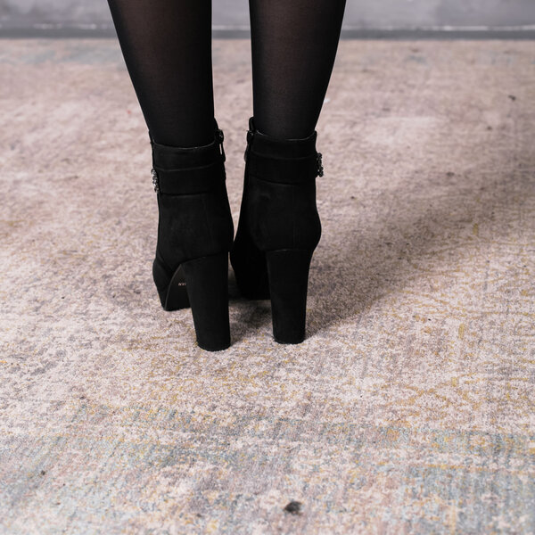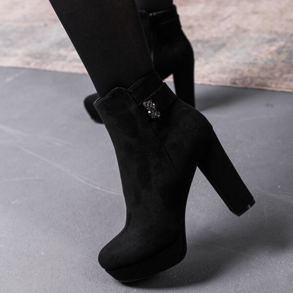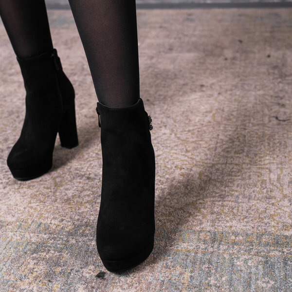 Ботильоны женские выполнены из искусственной замши, внутри подкалка из флиса. Модель аккуратно сидит на ножке. Дизайн этой модели в черном цвете. Рассчитаны на узкую и среднюю ножку. Женские ботильоны Flicka – позволят вам сделать ваш образ еще более изысканным и утонченным.