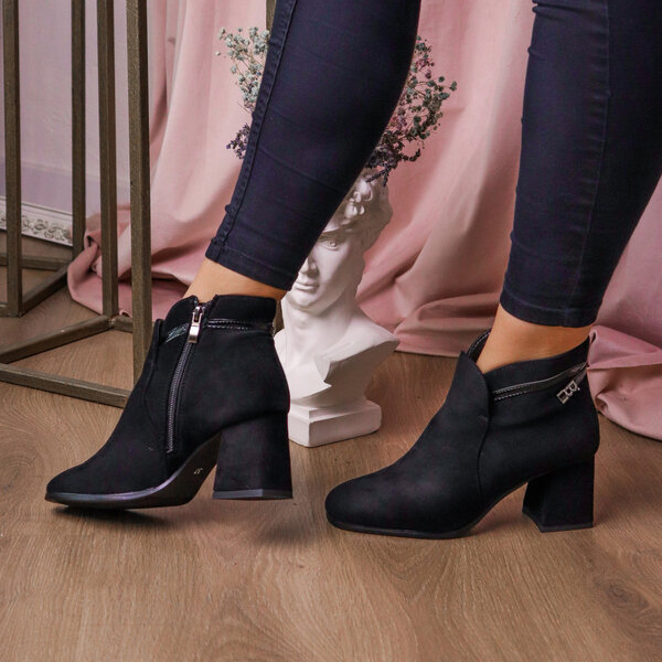 Ботильоны женские выполнены из искусственной замши, внутри подкалка из флиса. Модель аккуратно сидит на ножке. Дизайн этой модели в черном цвете. Женские ботильоны Jet – позволят вам сделать ваш образ еще более изысканным и утонченным.