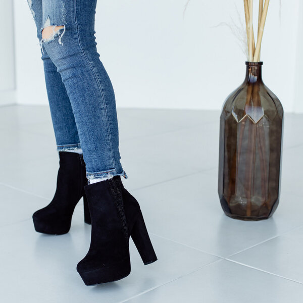 Ботильоны женские выполнены из искусственной замши, внутри подкалка из текстиля. Модель аккуратно сидит на ножке. Дизайн этой модели в черном цвете. Рассчитаны на узкую и среднюю ножку. Женские ботильоны Layla – позволят вам сделать ваш образ еще более изысканным и утонченным.