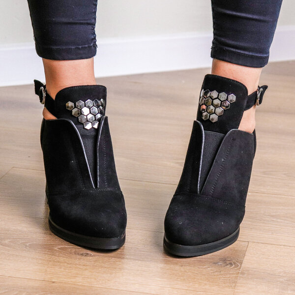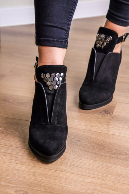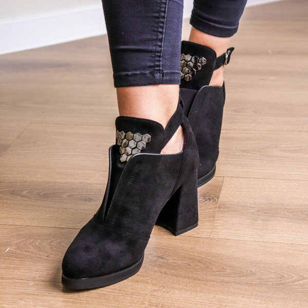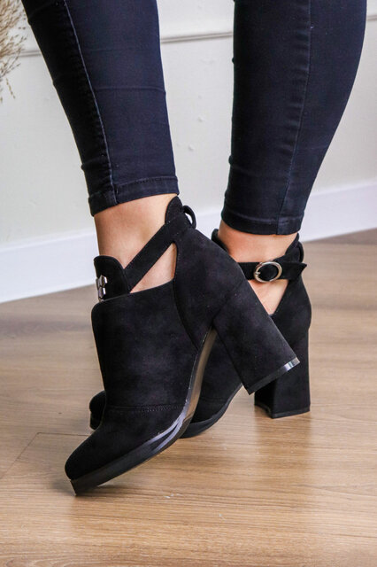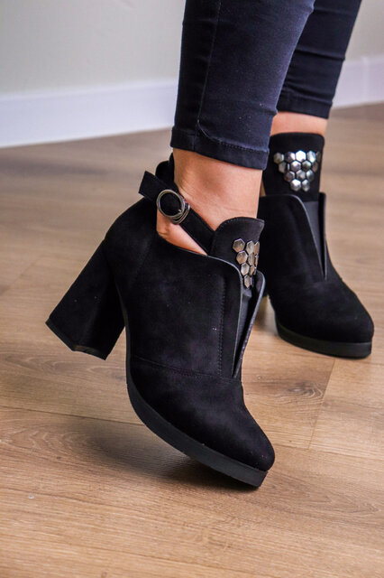 Ботильоны женские выполнены из искуственной замши, внутри подкалка из эко кожи. Модель аккуратно сидит на ножке. Дизайн этой модели в черном цвете. Рассчитаны на узкую и среднюю ножку. Женские ботильоны Ophelia – позволят вам сделать ваш образ еще более изысканным и утонченным.