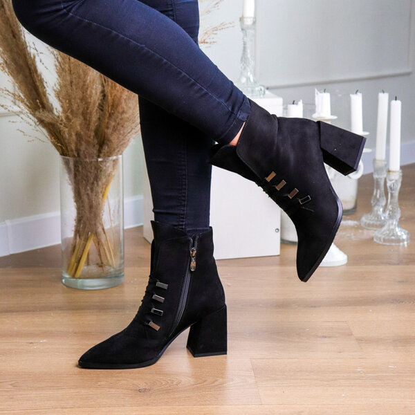 Ботильоны женские выполнены из искуственной замши, внутри подкалка из флиса. Модель аккуратно сидит на ножке. Дизайн этой модели в черном цвете. Рассчитаны на узкую и среднюю ножку. Женские ботильоны Sirius– позволят вам сделать ваш образ еще более изысканным и утонченным.