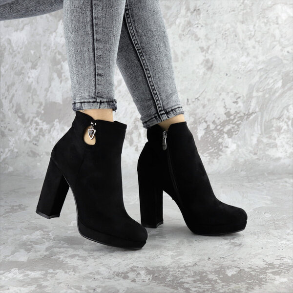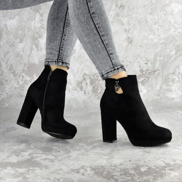 Ботильоны женские выполнены из искусственной замши, внутри подкалка из флиса. Модель аккуратно сидит на ножке. Дизайн этой модели в черном цвете. Женские ботильоны Storytime – позволят вам сделать ваш образ еще более изысканным и утонченным.