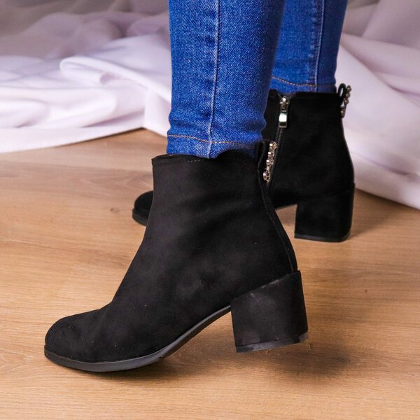 Ботильоны женские выполнены из искусственной замши, внутри подкалка из флиса. Модель аккуратно сидит на ножке. Дизайн этой модели в черном цвете. Женские ботильоны Tyrone – позволят вам сделать ваш образ еще более изысканным и утонченным.
