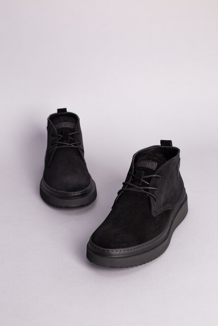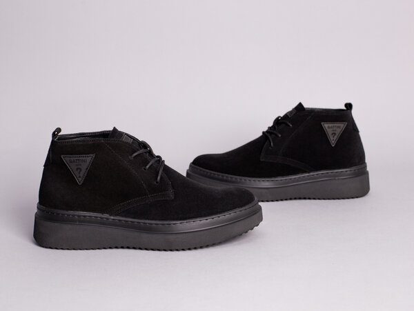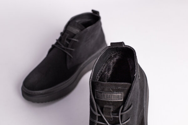 Ботинки мужские замшевые черные зимние со шнуровкой