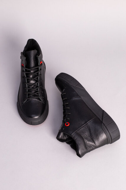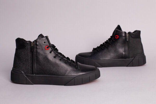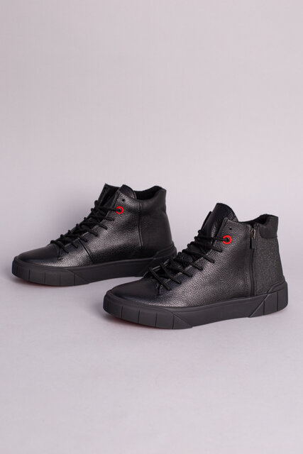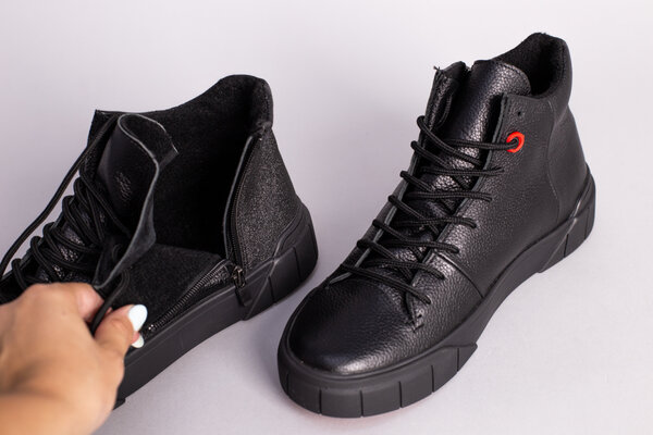 Ботинки мужские кожа флотар черного цвета демисезонные
