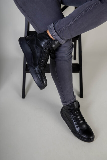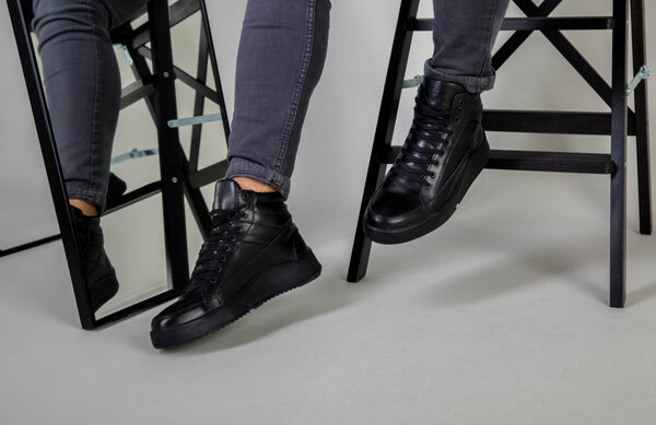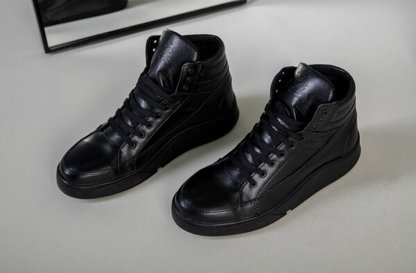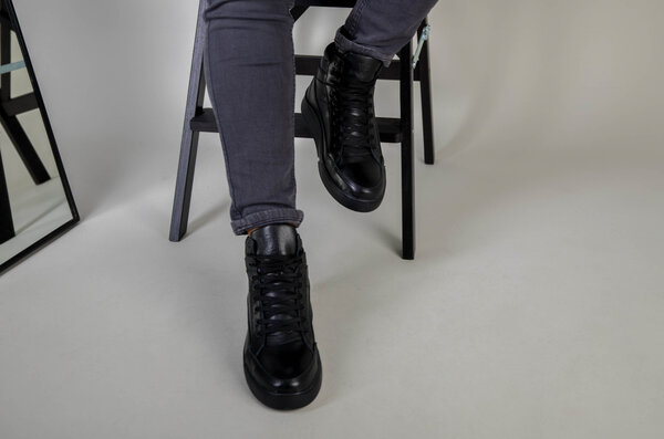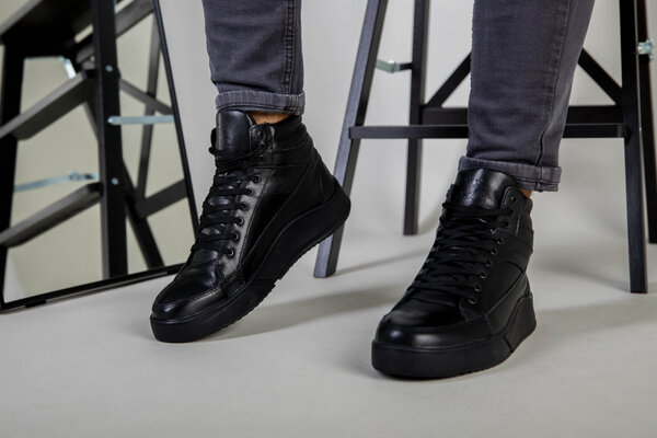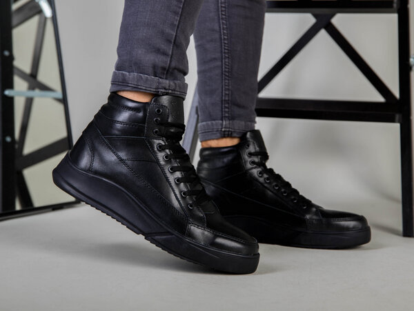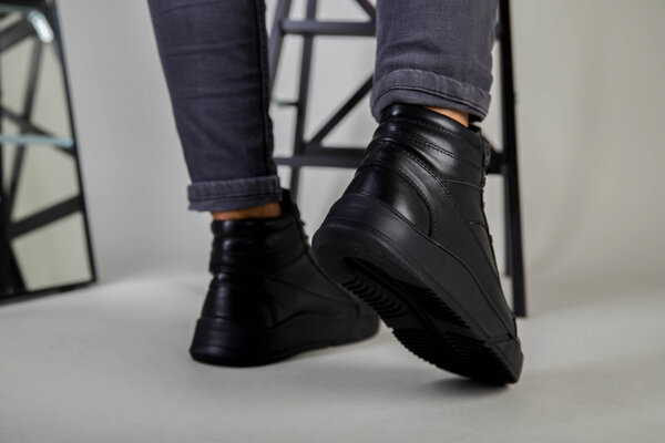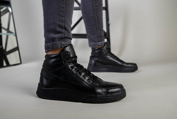 Ботинки мужские кожа флотар черного цвета зимние