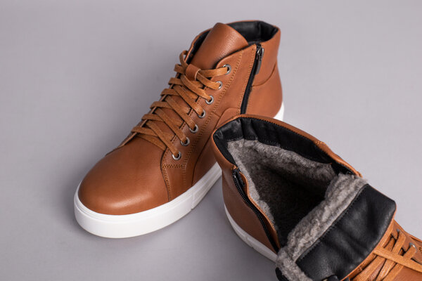 Ботинки мужские кожаные рыжие зимние