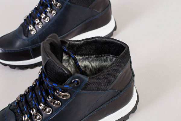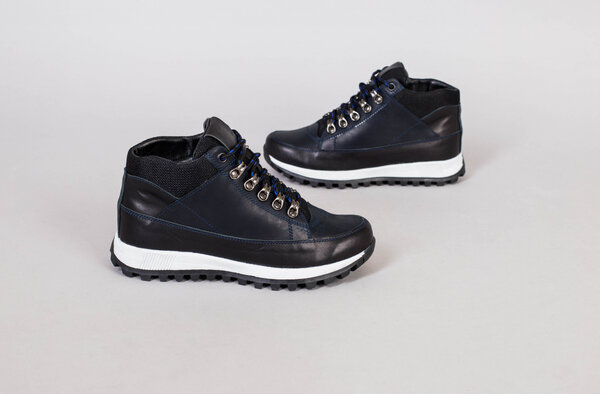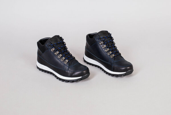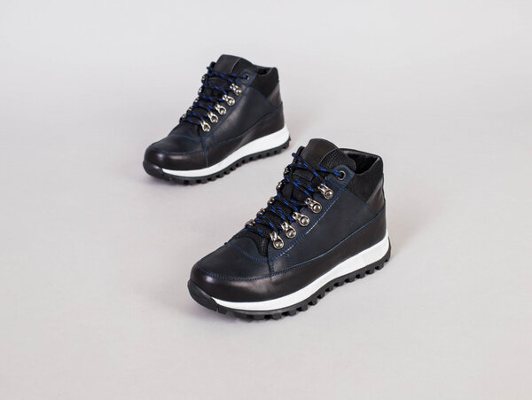 Ботинки мужские кожаные синие на шнурках, зимние