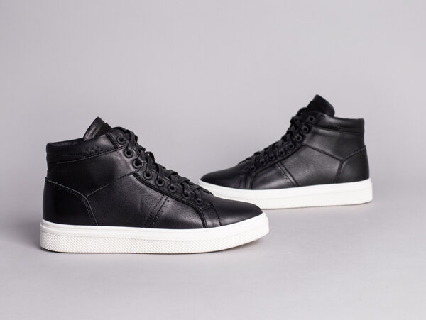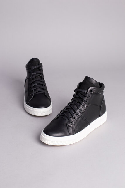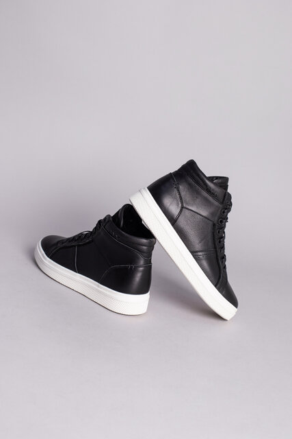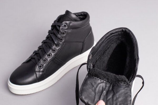 Ботинки мужские кожаные черного цвета зимние на белой подошве
