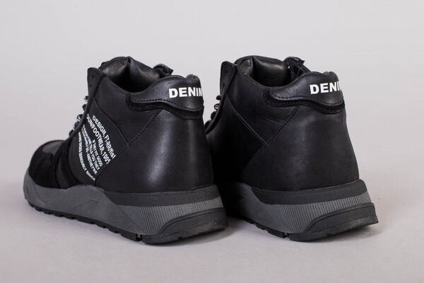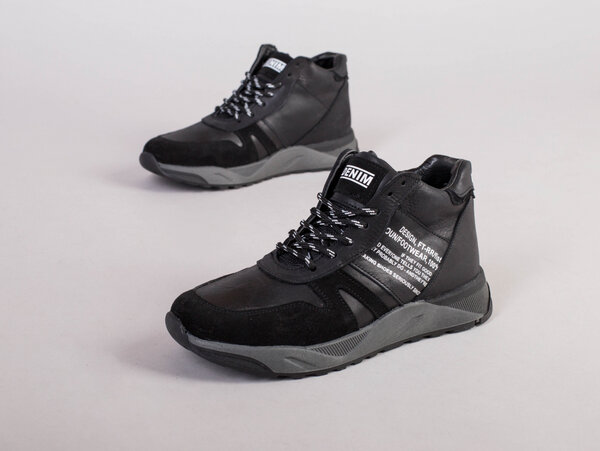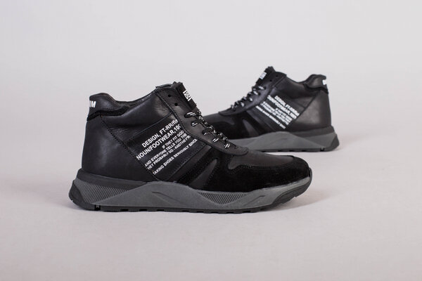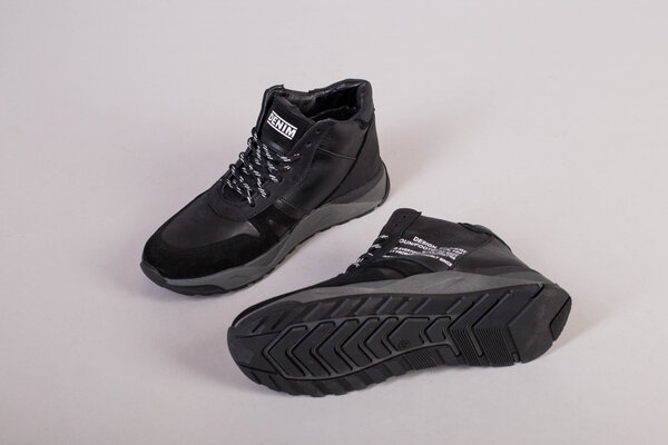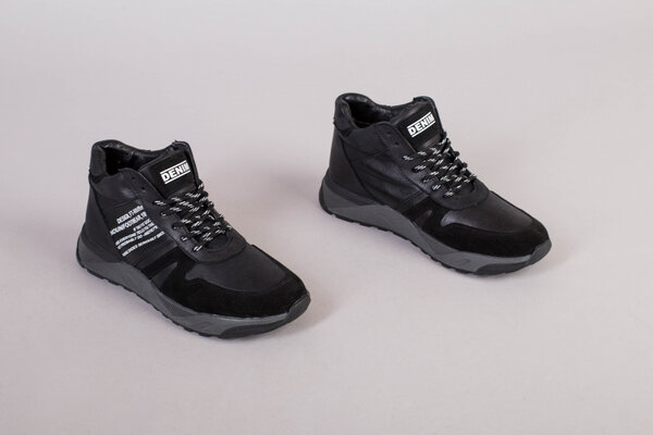 Ботинки мужские кожаные черные с вставками замши, зимние