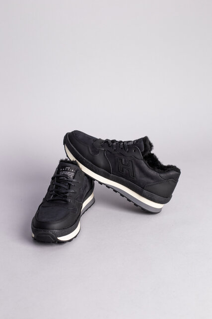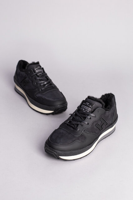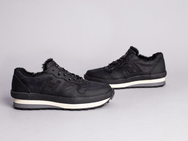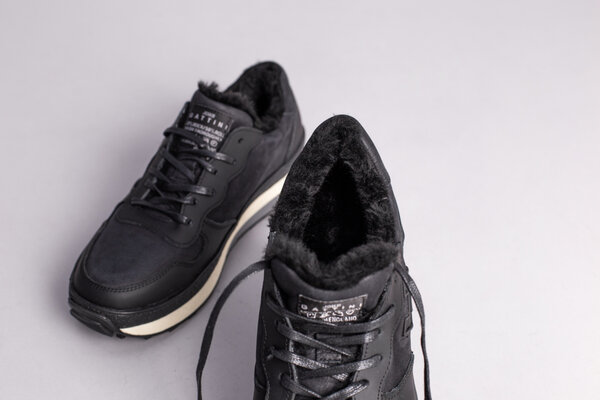 Кроссовки мужские кожаные черного цвета на меху