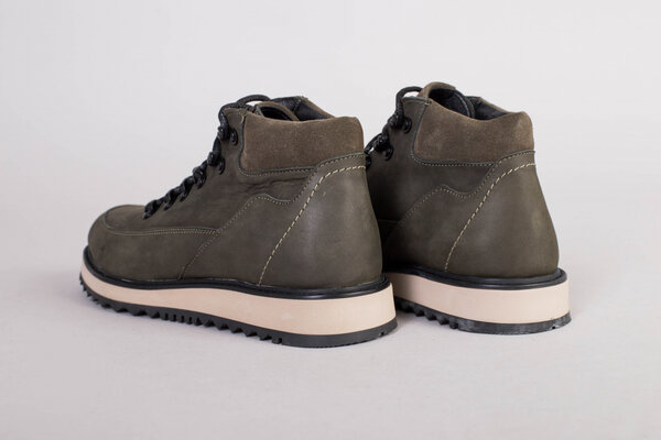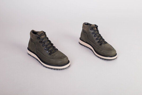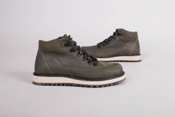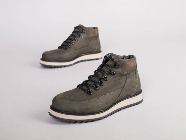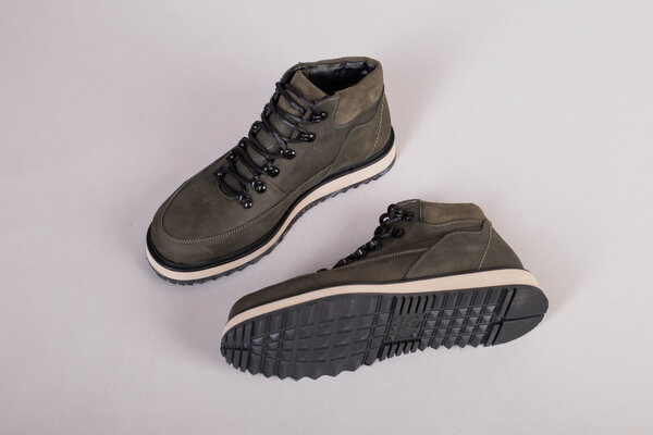 Мужские зимние ботинки из нубука на шнурках, цвет хаки