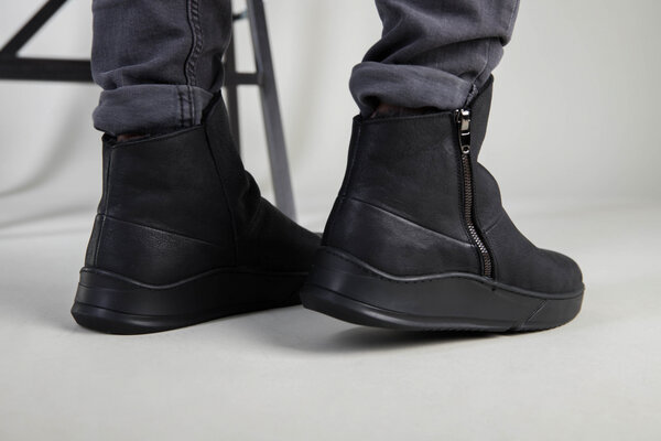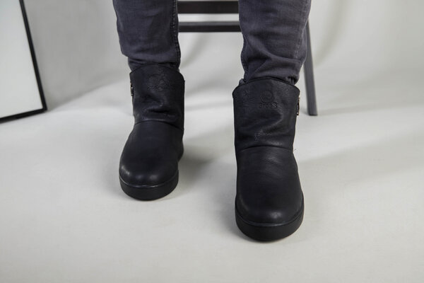 Мужские кожаные черные зимние ботинки, 40