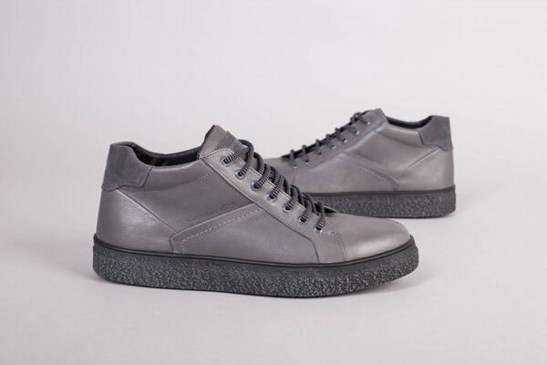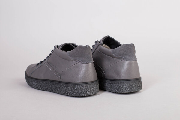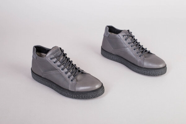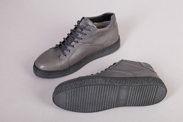 Мужские серые кожаные зимние ботинки на шнурках