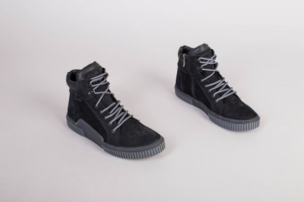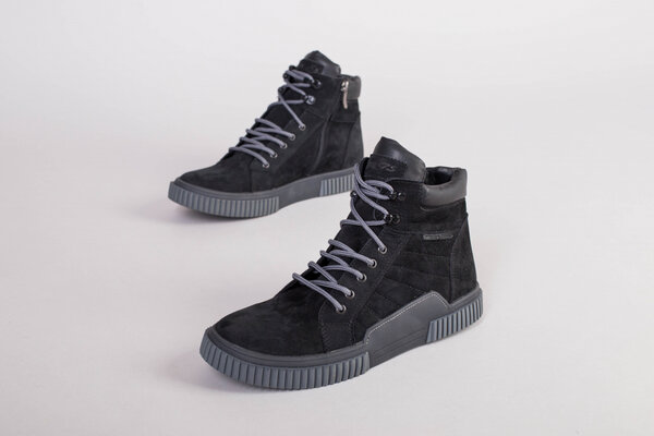 Мужские черные зимние ботинки из нубука, на шнурках и с замком
