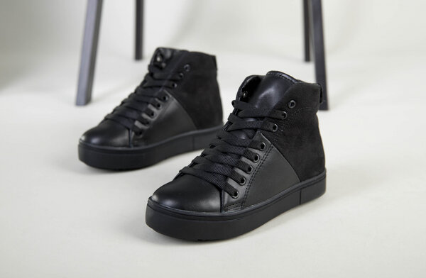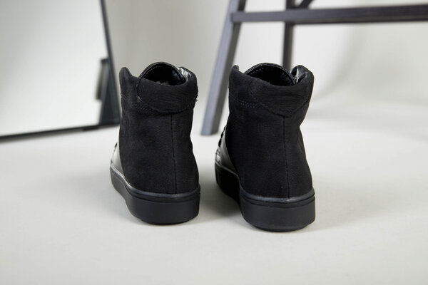Ботинки для мальчика кожаные черные с вставкой нубука