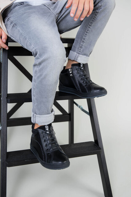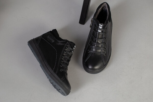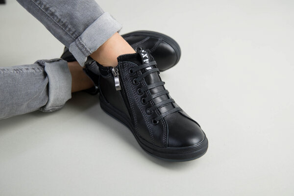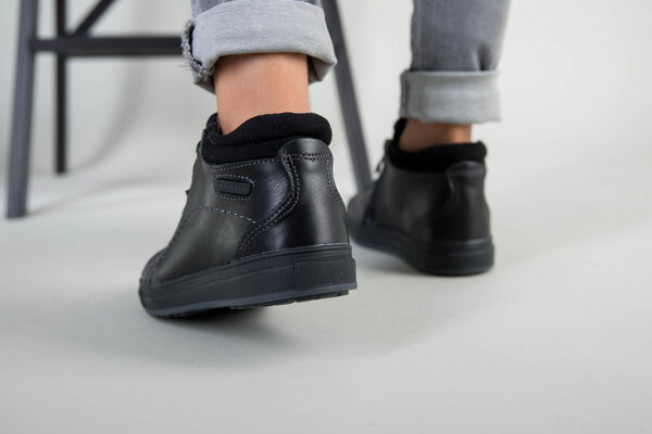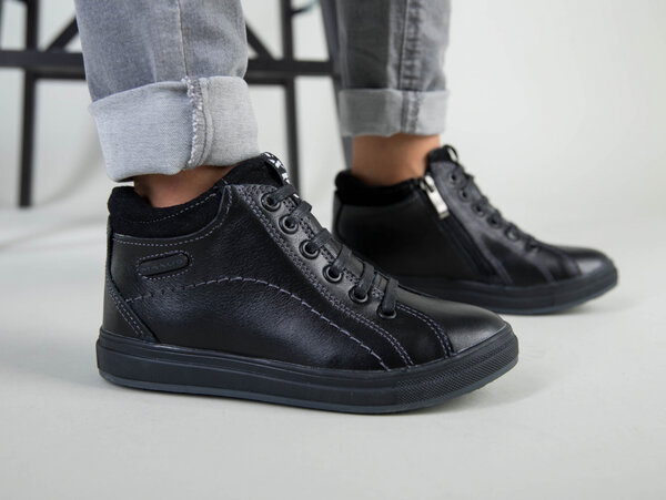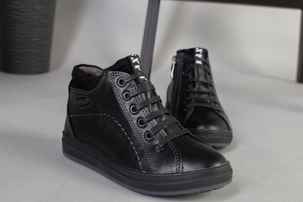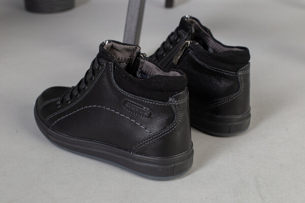 Демисезонные черные кожаные ботиночки для мальчика