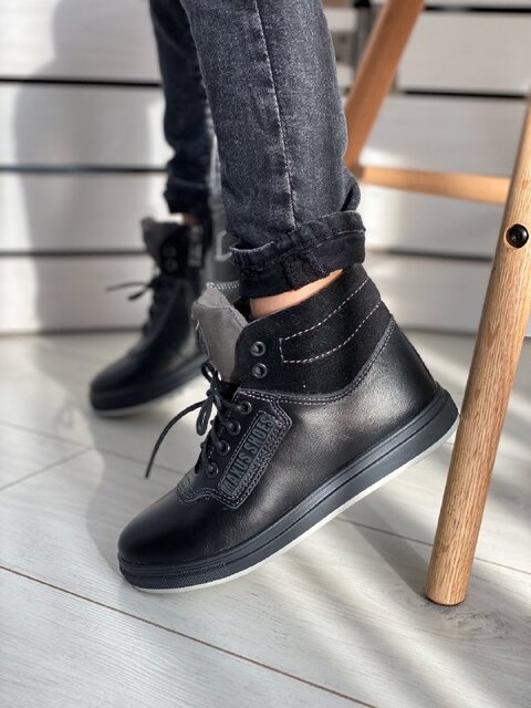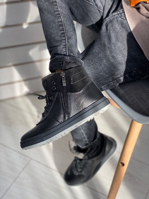Зимние черные кожаные ботиночки