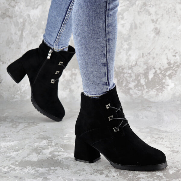 - Женские зимние ботильоны на каблуке Umpa черные 1369