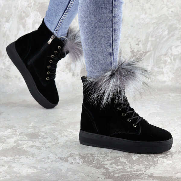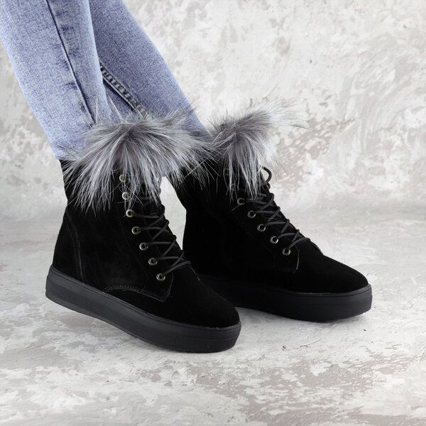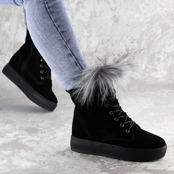 - Женские зимние ботинки с мехом Katch черные 1404