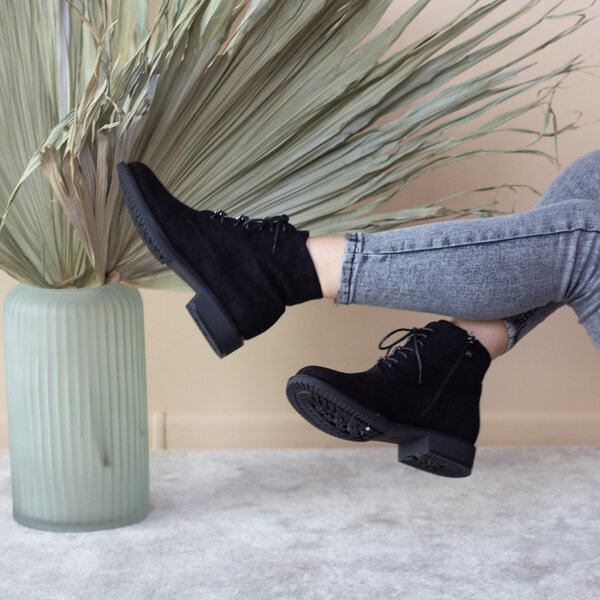 Ботинки женские выполнены из искусственной замши, внутри подкалка из флиса. Модель аккуратно сидит на ножке. Дизайн этой модели в черном цвете. Женские ботинки Flitter – позволят вам сделать ваш образ еще более изысканным и утонченным.